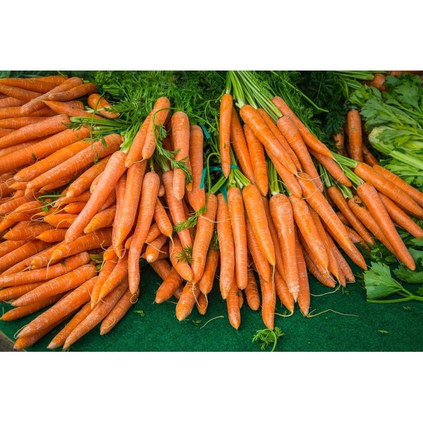 La carotte se récolte de juin à décembre en fonction de la date de vos semis. Récoltez en fonction de vos besoins et au fur et à mesure du développement des racines. Ne tardez pas à récolter car si elles sont trop grosses, elles risquent de se fendre. La carotte améliorée demi longue nantaise est une variété très productive et mi-précoce. Elle offre un bon rendement : 1 kg/m² quand elles sont récoltées primeur et jusqu’à 5 kg/m² au stade final de cueille. Pour récolter, prenez une fourche et soulever vos carottes doucement pour ne pas les transpercer. Vous n’aurez plus qu’à tirer dessus, puis secouez les pour enlever le maximum de terre qui pourrait se coller dessus. Cette variété produit des racines droites pouvant atteindre les 30 cm. Récoltez uniquement les plus belles pour permettre aux petites de se développer. Cette technique permet de réaliser un éclaircissage sans perdre de plants.