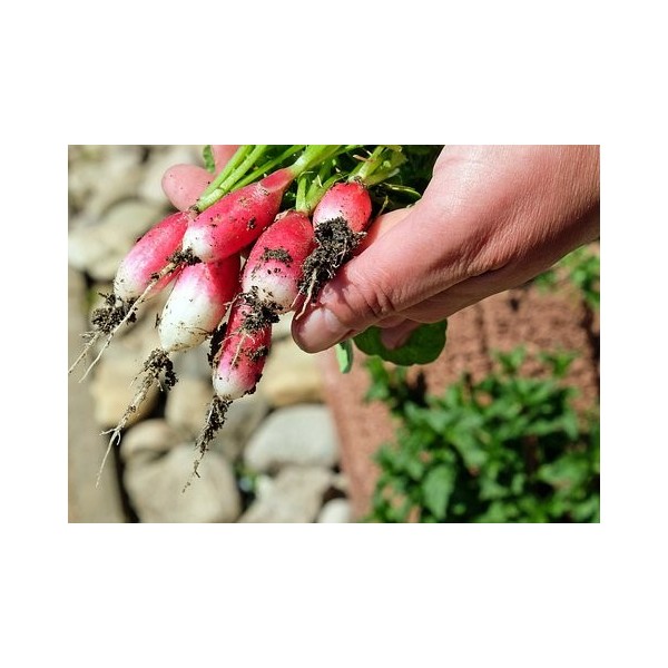 Le radis se déguste simplement cru avec du pain et du beurre, et pour les plus gourmand avec des cristaux de sel dans le beurre ! Il décore vos salades par la couleur rosé et apportera du croquant et de la fraicheur notamment au printemps en attendant les légumes d’été. Ce légume est peu calorique si vous le consommer tout seul (sans pain/beurre) ou en apéritif avec des tomates cerises, que vous pourrez également cultiver avec nos graines de tomates cerises red cherry biologiques.