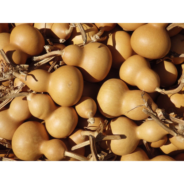 Les fruits de la Gourde Pèlerine sont récoltés à maturité, lorsque la peau devient dure et sèche. Ils sont ensuite vidés de leur contenu et séchés pour être transformés en récipients, instruments ou éléments décoratifs. Ces gourdes peuvent être peintes, gravées ou laissées naturelles selon l'usage désiré.Conditionnement :