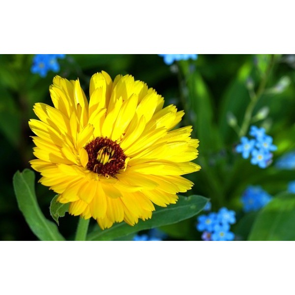 La culture du souci des jardins varié, également connu sous le nom scientifique de Calendula officinalis, est assez distinctive et facile à reconnaître. Ces graines de fleurs semis de printemps donneront une plante annuelle qui peut atteindre une hauteur d'environ 30 à 60 centimètres. Il présente des tiges dressées et ramifiées, avec des feuilles vertes allongées et légèrement dentelées. La caractéristique la plus reconnaissable du souci des jardins varié est ses fleurs vibrantes et colorées. Les fleurs peuvent varier en couleur, allant du jaune vif à l'orange, en passant par des teintes plus pâles de blanc ou de crème. Elles sont généralement de forme simple, avec des pétales larges et arrondis disposés autour d'un centre plus foncé. Au centre de chaque fleur de souci des jardins varié, on trouve un disque de petits tubules de couleur foncée. Ces tubules peuvent être jaunes, brun foncé ou même pourpres, selon la variété. Ils ajoutent une touche intéressante à l'apparence globale de la fleur. Les fleurs du souci des jardins varié sont assez grosses, avec un diamètre d'environ 5 à 10 centimètres. Elles peuvent être solitaires ou se regrouper en grappes terminales au sommet des tiges. Le souci des jardins varié dégage une odeur agréable, souvent décrite comme un mélange de notes florales et herbacées. Son parfum subtil ajoute une dimension olfactive à votre jardin. Les feuilles du souci des jardins varié sont vertes, alternes et généralement ovales ou en forme de spatule. Elles peuvent être légèrement velues au toucher. Le souci des jardins varié est apprécié pour sa beauté ornementale et ses nombreuses utilisations. Il est souvent cultivé dans les jardins de fleurs, les massifs, les bordures ou les potagers. Les fleurs peuvent également être utilisées dans les bouquets, les arrangements floraux ou séchées pour des utilisations décoratives.