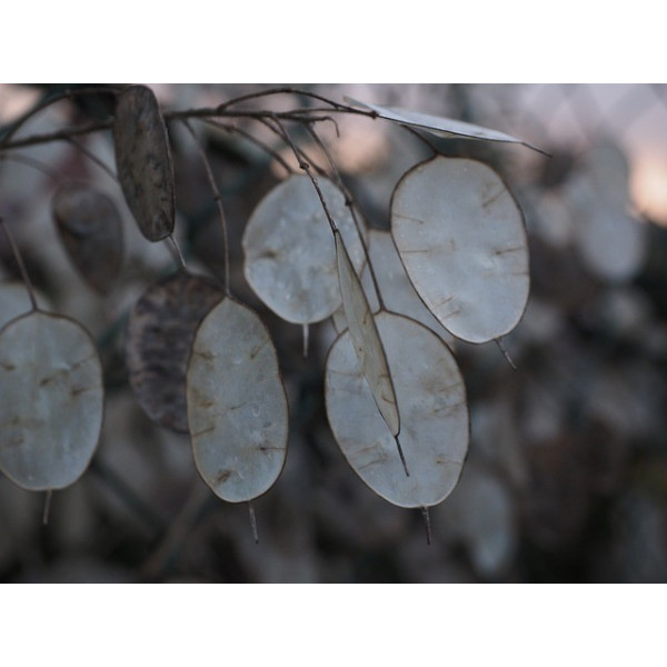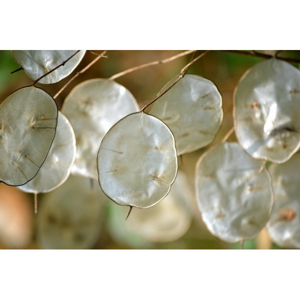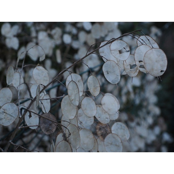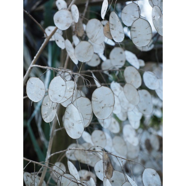 Aspect unique des fruits : Après la floraison, la plante produit des fruits plats et ronds, ressemblant à des pièces de monnaie – d'où son nom. Ces silicules sont initialement vertes, puis deviennent brunes ou argentées en mûrissant. Lorsqu'elles sont sèches, ces capsules translucides exposent les graines à l'intérieur, créant un effet visuel fascinant qui est particulièrement prisé pour les bouquets secs.