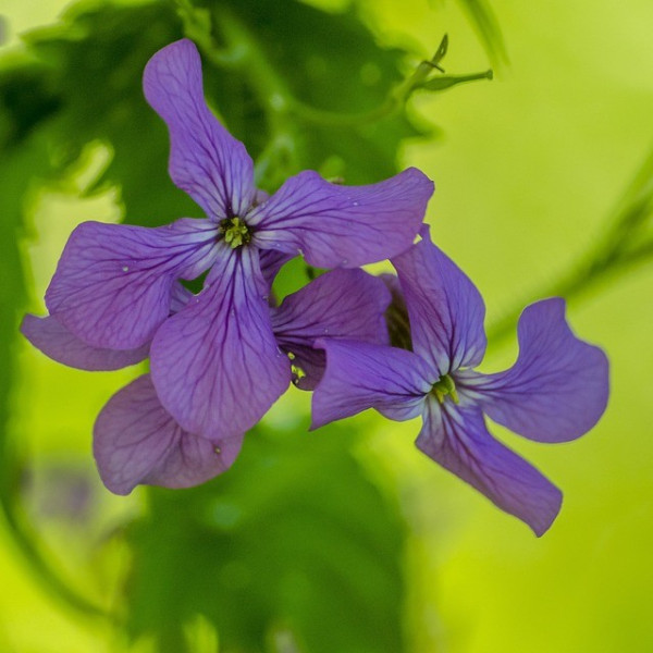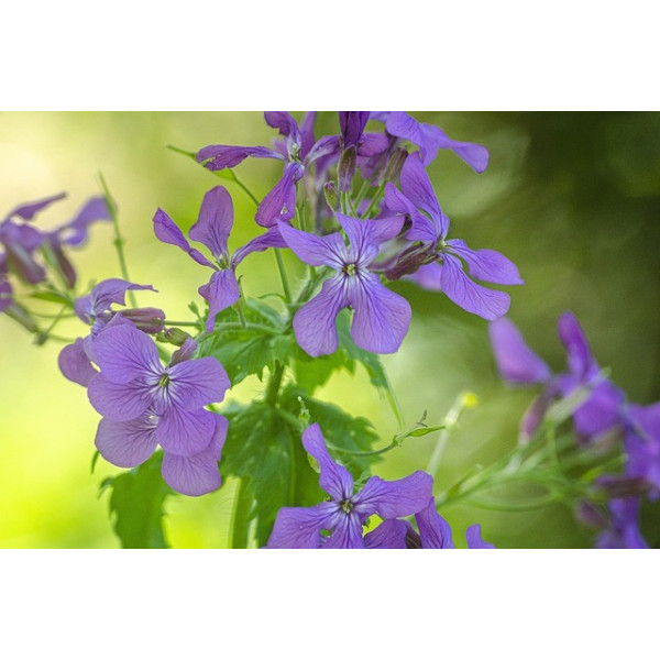 Identification des fleurs : Au printemps, la Monnaie du Pape produit des grappes de petites fleurs. Ces fleurs, souvent de couleur violette ou pourpre, parfois blanches, sont composées de quatre pétales disposés en croix. Elles sont généralement regroupées au sommet des tiges, offrant un contraste saisissant avec le feuillage vert.