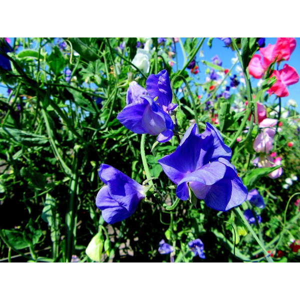 Décoration de jardin : Les Pois de senteur spencer bleu sont couramment utilisés à des fins décoratives dans les jardins, les massifs de fleurs, les bordures et les conteneurs. Leur élégante floraison bleu crée un contraste visuel saisissant et ajoute de la beauté à votre espace extérieur.