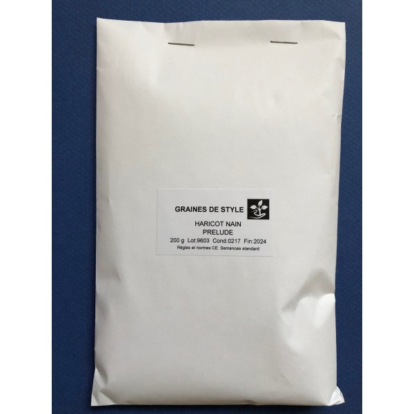 Le haricot nain mangetout Prélude est une variété récente, reconnu pour son très bon rendement et sa précocité. Ce haricot est une amélioration de la variété « Princesse double de Hollande ». Il produit de belles gousses vert foncé, d’une longueur de 13 à 15 cm légèrement arquées et ovales. Les gousses sont assemblées en grappes et renferment des grains blancs à l’intérieur. Le semis de ces graines de haricots nains mangetout s’étale d’avril à août pour une récolte de juin à octobre. Pour se développer dans de bonnes conditions, il faudra le placer dans un endroit ensoleillé avec un sol de préférence riche, léger et bien drainé. La densité de plantation est 6 cm entre chaque plant et 40 cm entre les rangs avec une hauteur de 45 cm.
