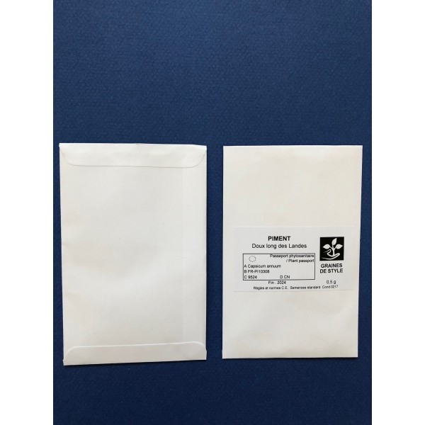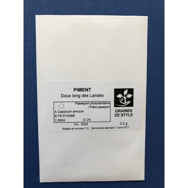 Le piment doux des Landes est une variété de graines de piments traditionnelle dans le sud-ouest de la France. Cette variété produit de beaux fruits finement allongés, étroits d’une longueur moyenne de 15 cm. Ils sont de couleur verte puis deviendront rouge vif à maturité. Ils ressemblent au piment fort type cayenne mais contrairement aux apparences ils sont très doux. C’est la variété la plus connue des piments par leur niveau d’intensité qui reste raisonnable en bouche pour un piment. Pour se développer dans de bonnes conditions, il aura besoin d’être placé dans un endroit ensoleillé avec un sol de préférence riche, meuble et bien drainé. La densité de plantation est de 60 cm en tous sens, une hauteur de 80 cm et un diamètre de 30 cm. Il offre un bon rendement avec sa saveur fruitée et sa peau très fine Cette culture est relativement simple et demande peu d’entretien, mais beaucoup de chaleur.