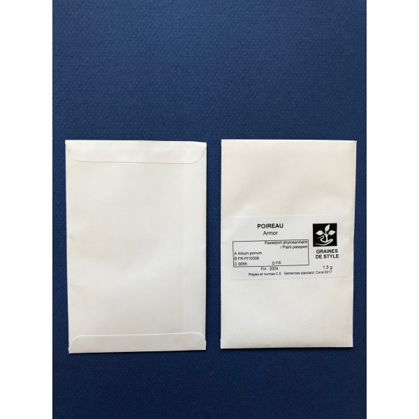 Le poireau Armor est une variété de graines de poireaux rustique et résistante aux maladies. Facile à cultiver, elle peut être produites dans les régions froides car elle résiste aux températures négatives pouvant aller jusqu’à – 15 degrés. Cette variété offre un long fût (partie blanche du poireau) avec un feuillage bien dressé de couleur vert foncé. Cette variété a un très bon rendement ce qui fait un incontournable dans les jardins avec ses propriétés de cultures adaptées pour répondre aux besoins des jardiniers. Cette variété se sème de mars à juillet pour une récolte allant d’octobre à mars. Pour se développer, il aura besoin d’être placé dans un endroit ensoleillé à mi- ombre avec un sol riche, léger et bien drainé. La densité de plantation est d’environ 15 à 20 cm en tous sens avec une hauteur à maturité de 75 cm et une envergure de 30 cm.