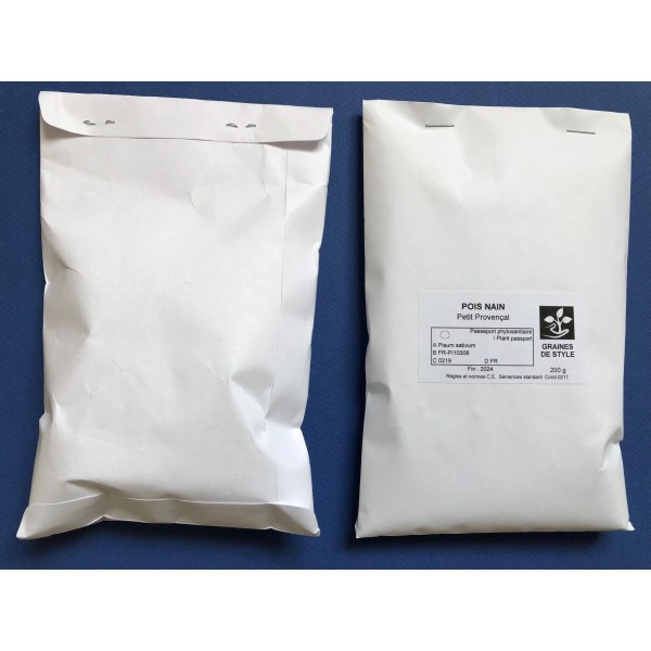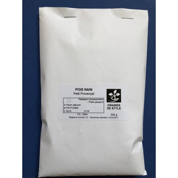 Le pois nain petit provençale est une variété de graines de pois hâtive, rustique et résistante aux maladies. Elle produit des grosses gousses légèrement arquées qui sont rempli de grains ronds de couleur verte et de taille moyenne. Ce pois est cultivé pour ses cosses qui contiennent de 7 à 9 grains. Vous pourrez semer en octobre/novembre et de février à juin pour une récolte d’avril à août. Pour se développer dans de bonnes conditions, il faudra le placer dans un endroit ensoleillé avec un sol de préférence riche, léger et bien drainé. La densité de plantation est 4 cm entre chaque plant et 40 cm entre les rangs avec une hauteur de 50 cm avec une envergure de 20 cm.