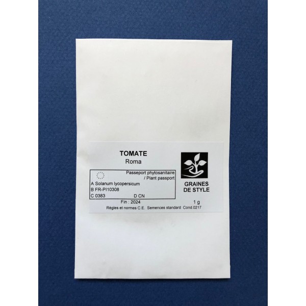 La tomate roma est une variété de graines de tomates résistante et précoce. Elle produira dès le mois de juin des tomates allongées, de taille moyenne de forme oblong avec la coloration rouge vif. Les fruits savoureux sont remplis de chaire, rendant peu de jus. Elle est idéale pour les salades d’été avec sa grande productivité. Pour exprimer tout son potentiel, cette variété aura besoin d’être exposée en plein soleil avec un sol de préférence riche et léger. A maturité, elle atteindra une hauteur de 1,5 m avec une envergure de 40 cm. La densité de plantation est d’environ 80 cm entre chaque plant pour assurer son bon développement.