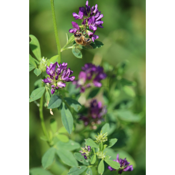 Utilisations : Outre son utilisation comme fourrage, la luzerne est également cultivée pour ses vertus nutritives et médicinales. Elle est riche en vitamines et en minéraux et est parfois utilisée en phytothérapie.